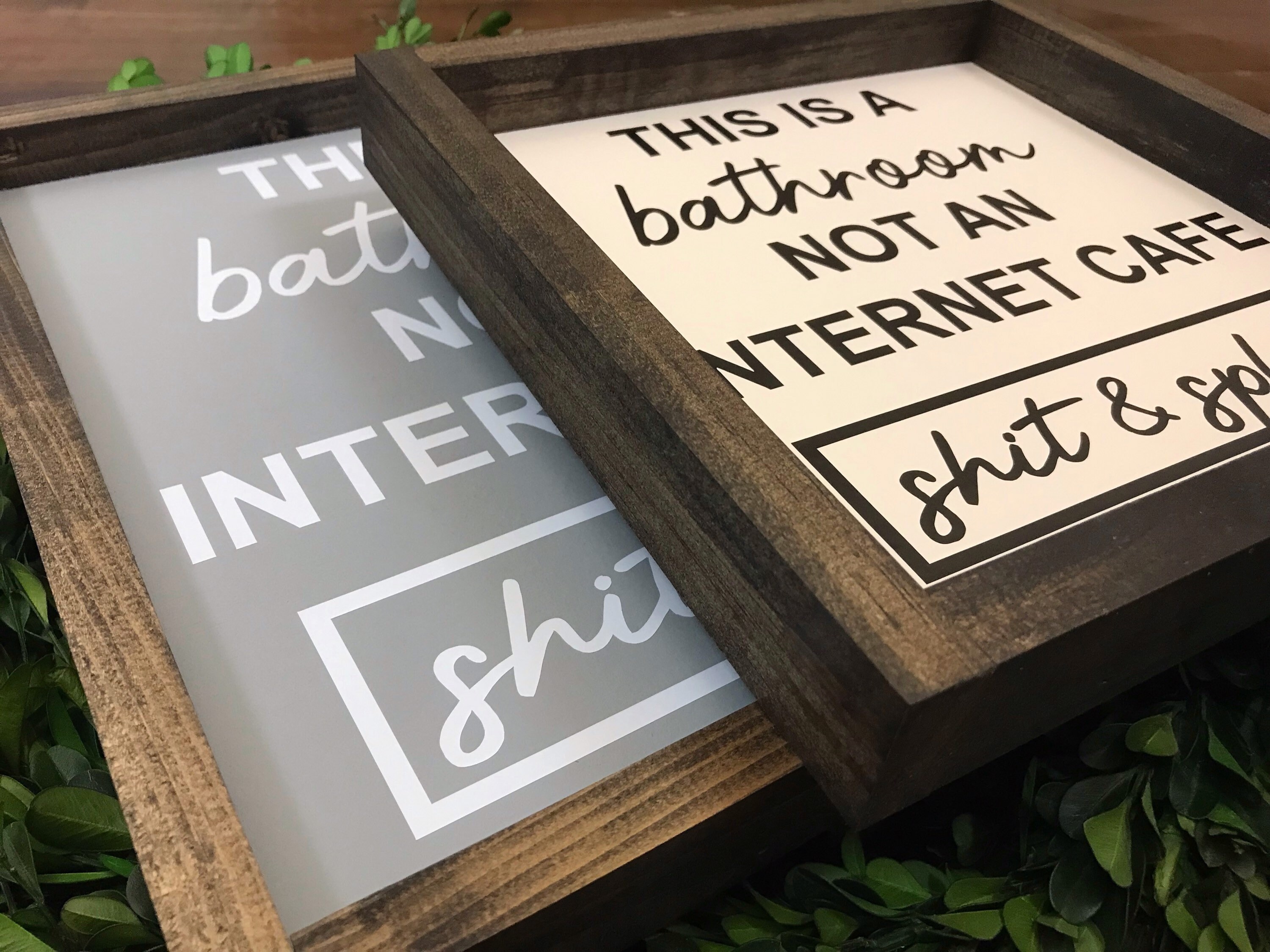 This Is A Bathroom Not An Internet Cafe Framed Wood Sign 10x10 Kelly Riley Design